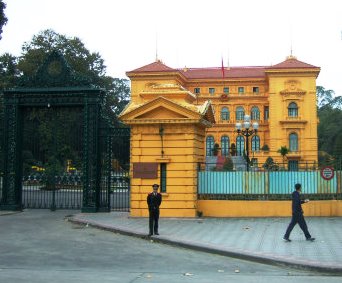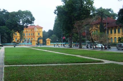 ![]() 『ホーチミン廟』の反対側を見渡すと、外務省の黄色い建物が目を引きました。 |