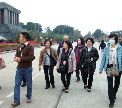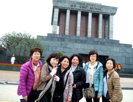 ![]() 『ホーチミン廟』前で記念写真 先頭を歩くのはガイドさんです。 |