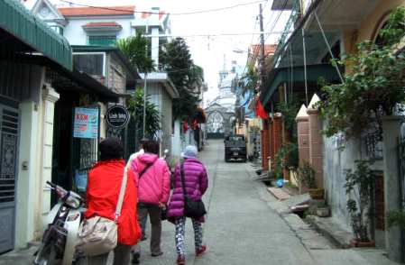 ![]() 狭い坂道の上にあるのがホンガイ教会です。 |