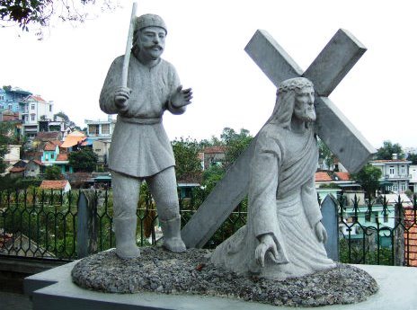 ![]() 『ホンガイ教会』 ハロン湾のバイチャイ橋(日本の支援で造る)を渡った対岸の丘の上に立っている教会 ヴェトナムでは、大多数が仏教徒ですが、キリスト教信者もいます。 |