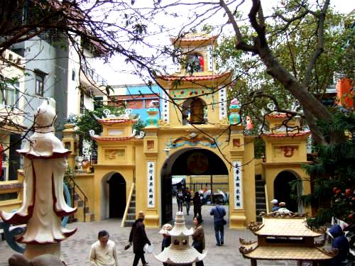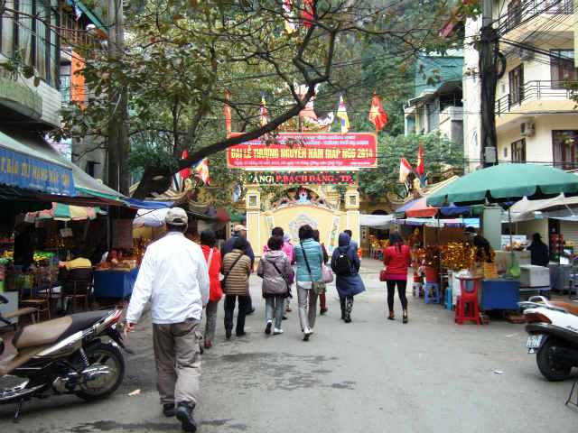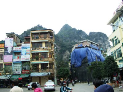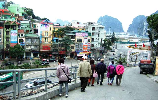 ![]() 左方にはハロン市場が、そしてハロン湾を見下ろし、崖の下にある龍天寺へ歩いて向かいます。 |
