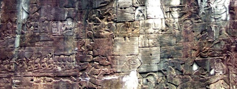 ![]() 左)平戸藩士「森本右近太夫」が1633年に訪れた時の墨書による落書き。 森本一房はこのアンコール・ワットを、『平家物語』の「祇園精舎の鐘の声、諸行無常の響あり」でお馴染みの、 インドの『祇園精舎』だと思っていたらしい。 381年前に訪れた日本人、そして私達も時を経て訪れたアンコール・ワットの響きを頂いて帰ります。 |
