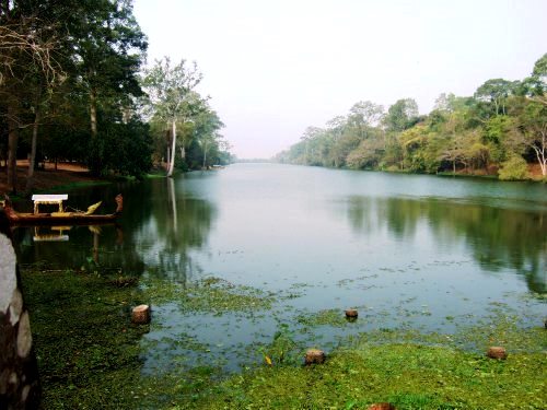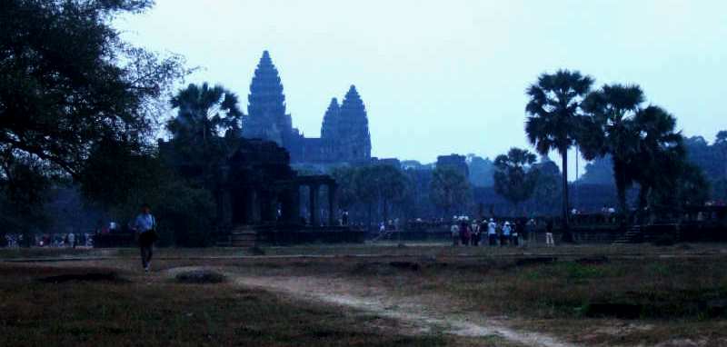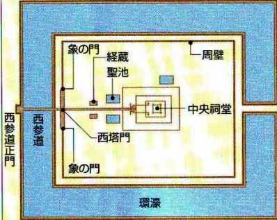 ![]() アンコールワットの入口である西参道から(手前に聖池が見える) |