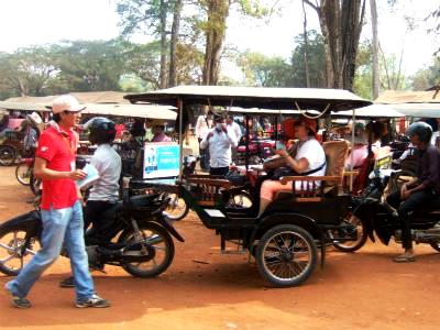 ![]() 小型電気バス?でバイヨンに向かいます。 |
