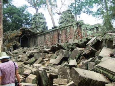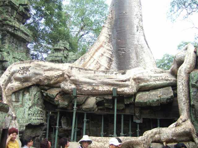 ![]() 密林に眠るタ・ブロム寺院へやってきました 遺跡はかなり崩壊しつつあり、修復も行われていますが、追いつきません。 |