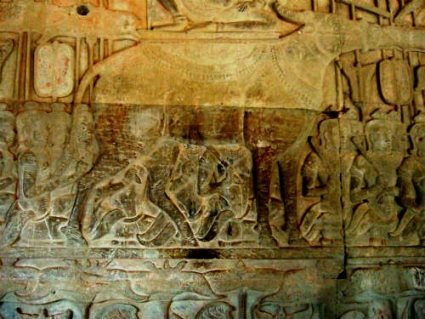 ![]() 回廊一面に彫られたレリーフは幾多の歴史を物語るのか |
