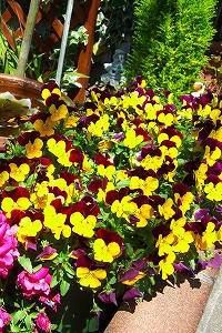店先にはいろいろな花が咲き乱れています
