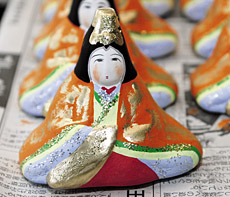 ![]() 『山田の雛さま』・・・初代岩信成作 大正11年(1922)に、父親の岩信成さんが素焼窯を築き、 七福神や福助、義経と弁慶、金太郎や桃太郎、十二支など、また今日に続く男雛女雛の内裏様を製作した。 飛騨の伝統のやきもの、「山田焼」の発祥地である高山市山田町で生れた |