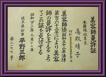美容師免許証