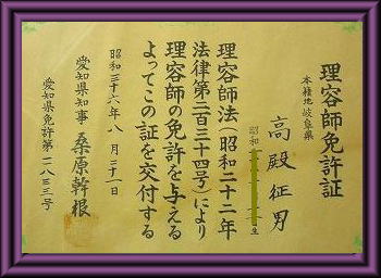 理容師免許証