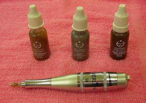 ☆ アートメイクは、ニードルを使って皮膚に色素を定着させる事を言います。 ☆ 皮膚の一番上の層の、ごく浅い部分に安全性の高い色素を、お好みの色に調合して定着させていく、メイクです。 ☆ タトゥー(刺青)と違って、皮膚の浅い部分にいれますので、年齢や肌質、生活環境によって個人差があります。 およそ2年〜5年でだんだん薄くなってきますので、カラーチェンジやデザインチェンジも簡単にできます。 |