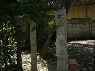 ![]() 【村社八幡社】明治44年建と【竜神八幡社】の石柱 |
