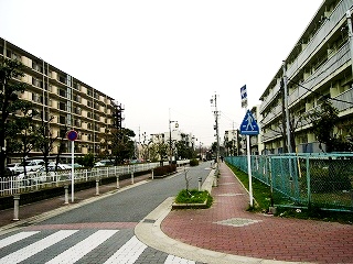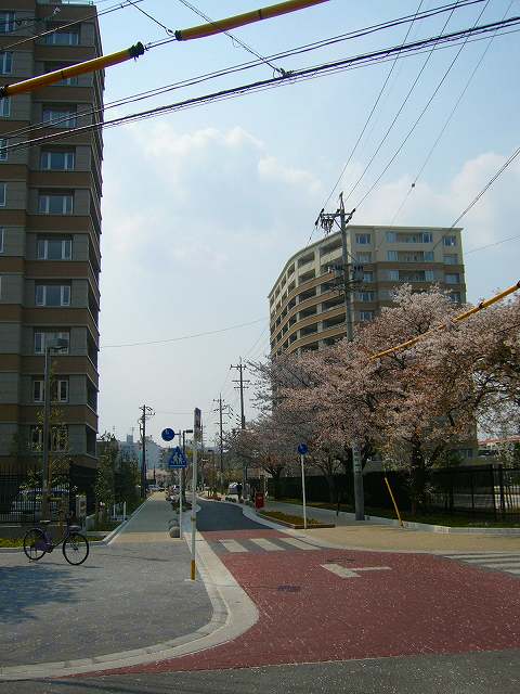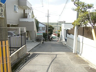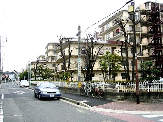 47北を見る![]() 左:H18完成の公務員住宅*右:市邨高校 盲学校・振甫中学校へと続く |