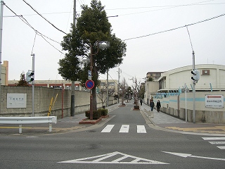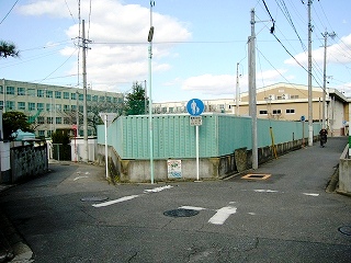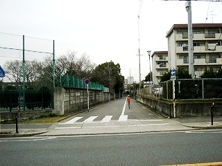 39西を見る![]() 西に下ると、高見小学校の東門 |