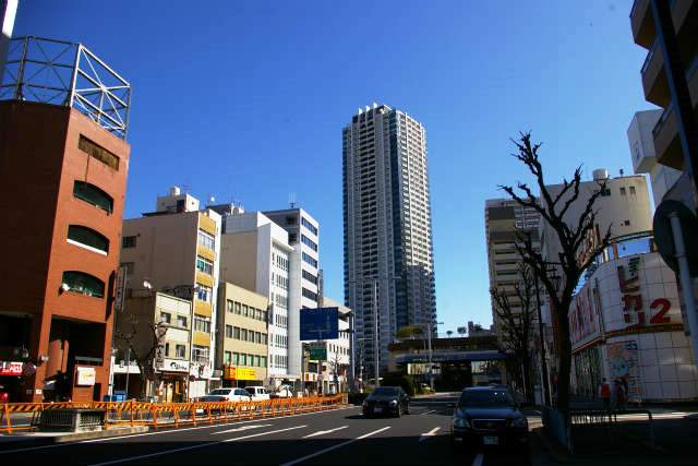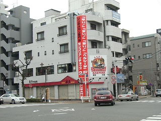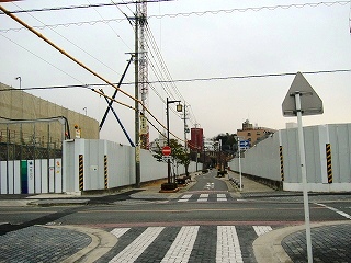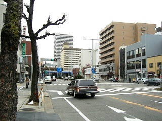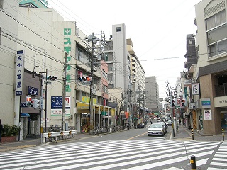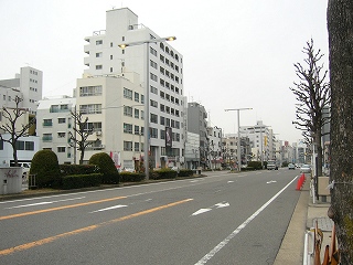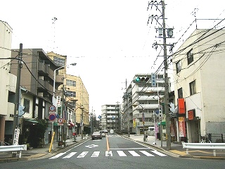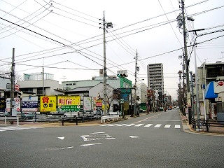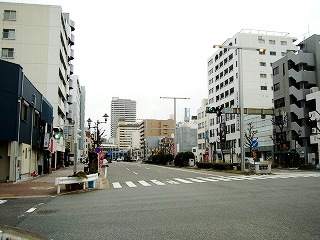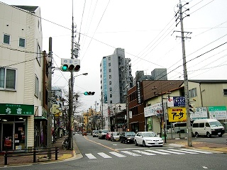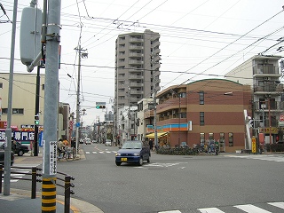 5南を見る![]() 高層マンションは元アトムボーイ*手前は99ショップ |