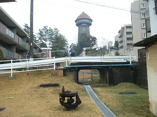 23西を見る ![]() 水道路の東外れ(↓下はトンネルで後ろの宿舎に通じていた) |