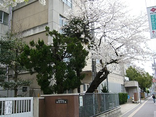 ![]() 高見小学校の北西の通用門の桜の木は 昭和20年代にすでにあった、懐かしい老木である |