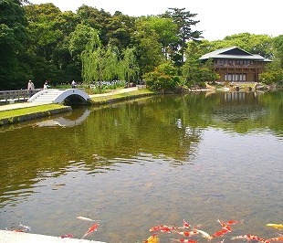 朝食を済ませママチャリ2台で東区の徳川園まで走る・・・9:15〜