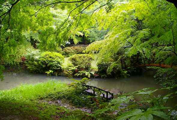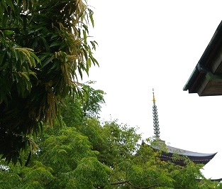 ![]() 梅雨空に木々の枝が重く垂れ下がる |