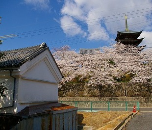 ![]() 外から見る: 北西の角にある蔵と日泰寺の五重塔 |
