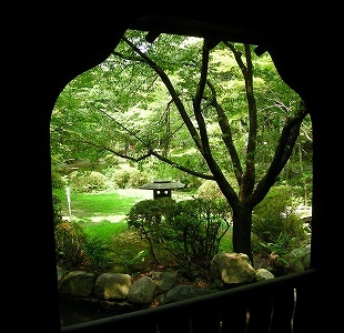 夏の緑が窓に映える