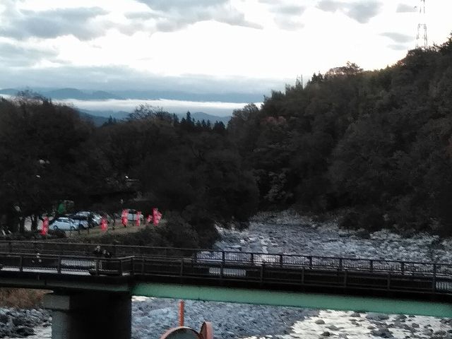 Am6:30~ 吐く息が白い、霜も降りて気温0度! 雲海も見えた。