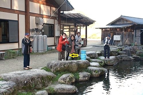 紅葉のきれいな阿智村『天魚あまごパークランド』 釣り竿を選ぶ(1本\300) うんちくを垂れて3本選ぶ