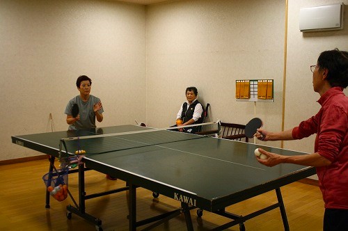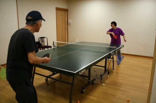 チェックイン後部屋で準備済ませ1:30~4:30卓球合宿 暖房が効きすぎていて冷房に切り替えプレー!