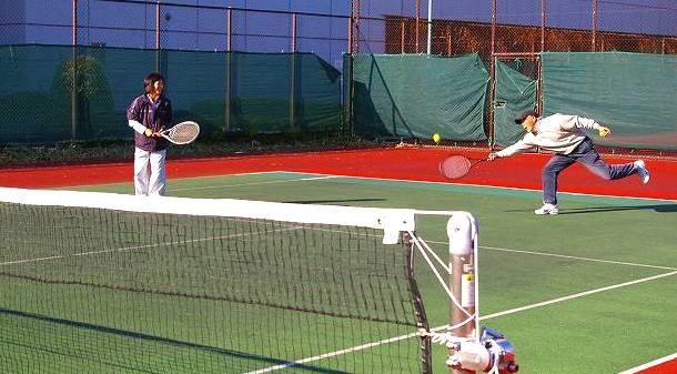 ![]() 「おっ!後ろ足に力を貯めて」**得意のフォアが炸裂>Takadonoさん |