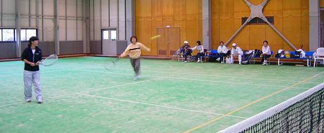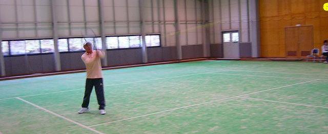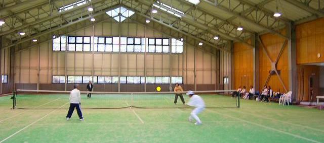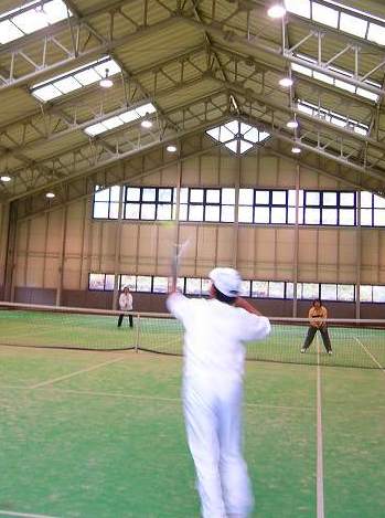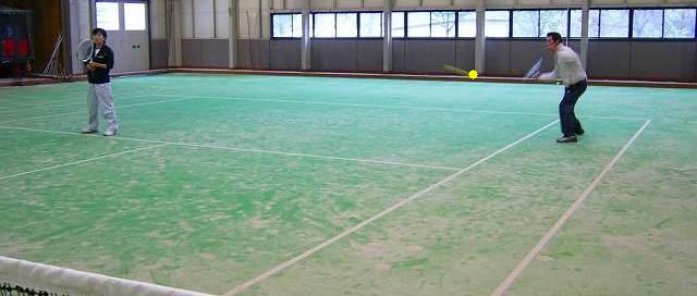 インドアコート(人工芝)テニス1面 1H \2000 : 11名の熱戦が始る |