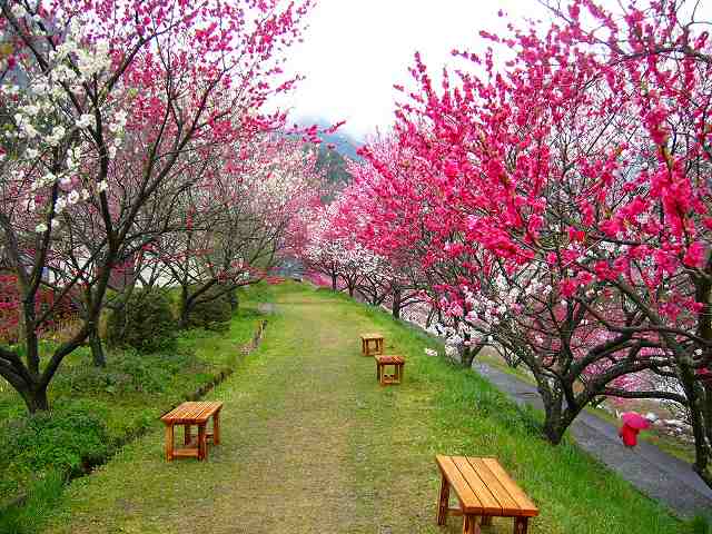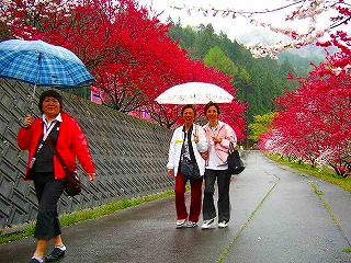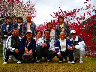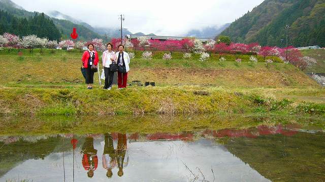 ![]() 『逆さ美人』 花桃と6人の記念写真? |
