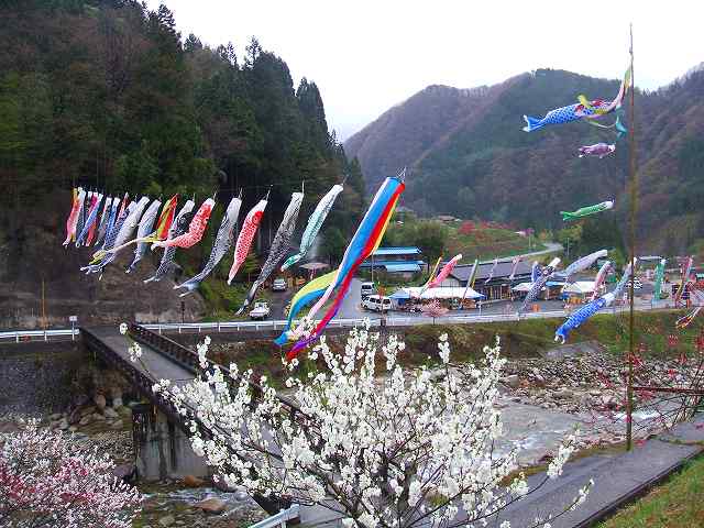 屋根よ〜り♪高〜い♪鯉の〜ぼ〜ぉり〜♪ 雰囲気は違うが、気持ちよく泳いでました。 |
