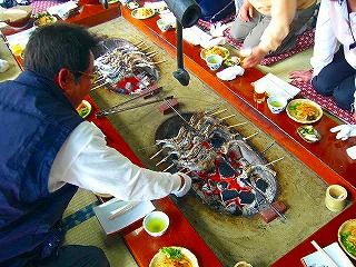 川魚の後は五平餅と休む暇なし |