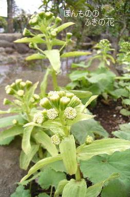 ![]() 蕗(ふき)の生えている所から伸びた蕗の薹(ふきのとう)?蕗の花だと思うがどうだろう? |