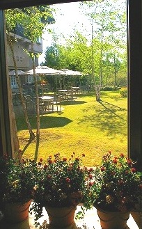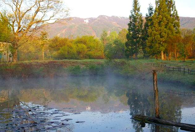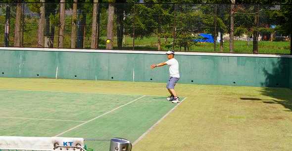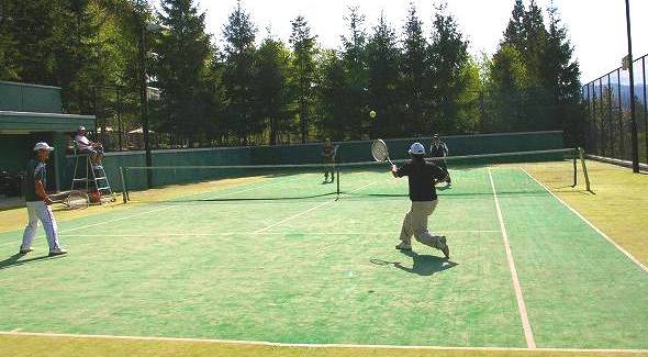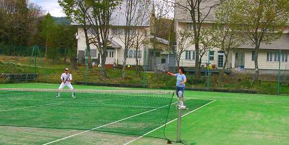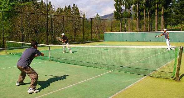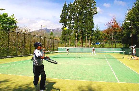 AM5:00〜7:30 散歩 長良川源流碑>テニス8:00〜9:00>朝食バイキングは9:00〜10:00
