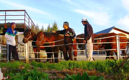 ![]() 木曽馬牧場で純ちゃんが口笛を吹いたら近寄ってきた |