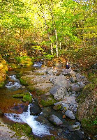 ![]() せせらぎに手を入れると気持の良い冷たさが伝わってくる源流 |