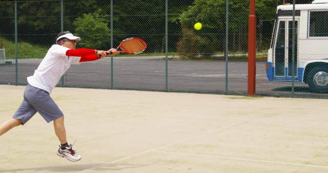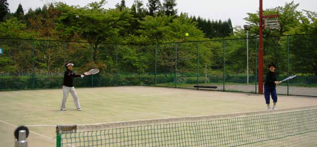 ![]() 和良運動公園 薄曇りなので野外コートでプレーしました。 |