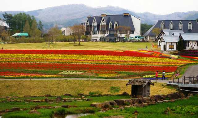 ![]() 牧歌の里のチューリップ畑を道路から眺める |