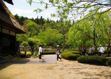 ![]() 民俗村の見学も、だんだん疲れてきましたが新緑が心地よい! |