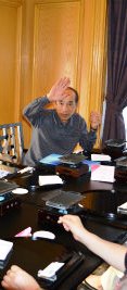 ![]() ![]() ![]() イケメン係り?の人が上手にビールをすすめ、お替りが増えた? 「ビールを追加する人」手を上げてー!「はーい!」 |