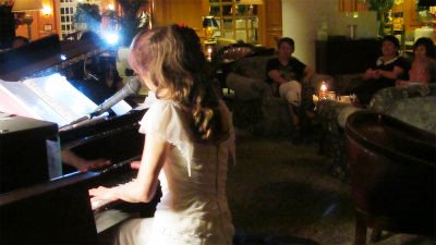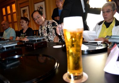 ![]() ![]() 9時からのピアノ演奏を聴くか審議中!「いつ聞くか?今でしょ!」で、残ったドリンク券を集める。 |