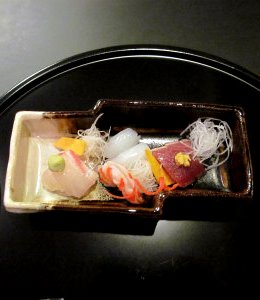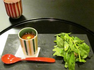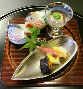 ![]() 「夕なぎ」の献立 前菜 椀盛り 造り |