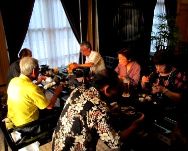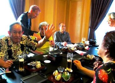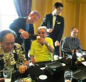 ![]() Mizuno氏の乾杯音頭で「お疲れさまー」 久し振りのビールが、テニスで乾いた喉を潤す! |