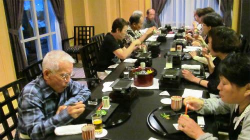 ![]() ![]() 二人部屋の私はいびきをかくから、和室で寝ることに。 夕食が5:30なので、急いで汗を流しエレベーターに乗り込み1Fへ?「日本海」がない? 2Fではないか「確か1Fと聞いたよなー」。 待っていた皆さんは、すこし「プンプン!」 |