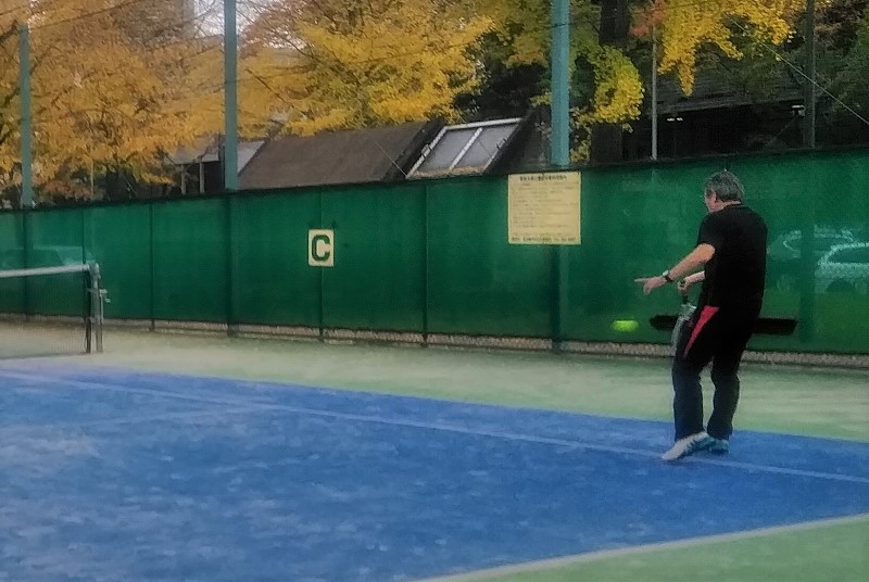 師走に入ったコートには落ち葉が吹き込んできます