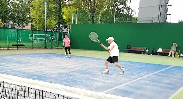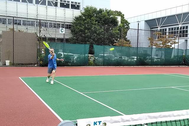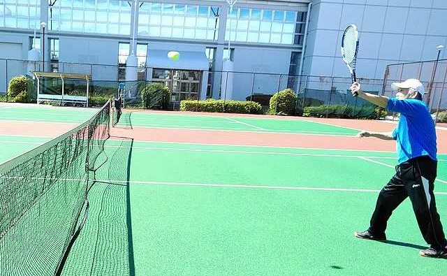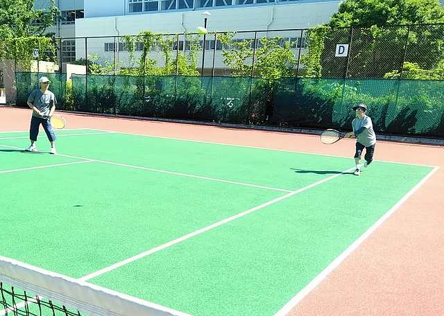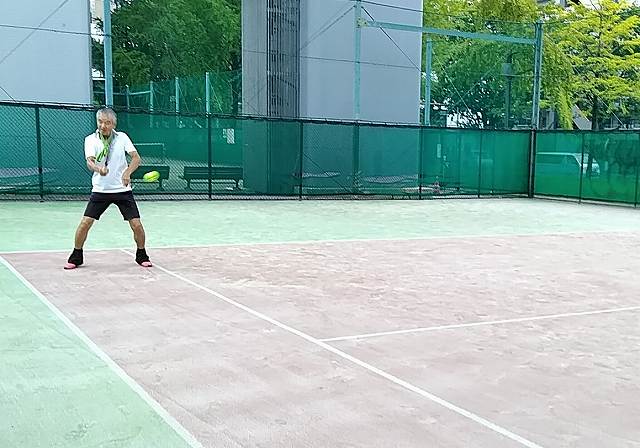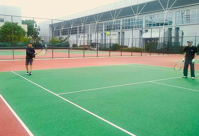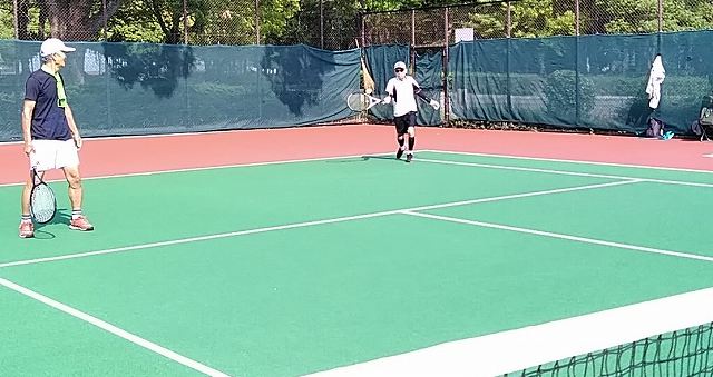 蒸し暑くなってきましたが、日陰のコートはそこそこ大丈夫でした。