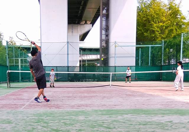 | 8月 5日(火) Am9:00~12:00 若宮コート 7名参加(ビジター2名) |
